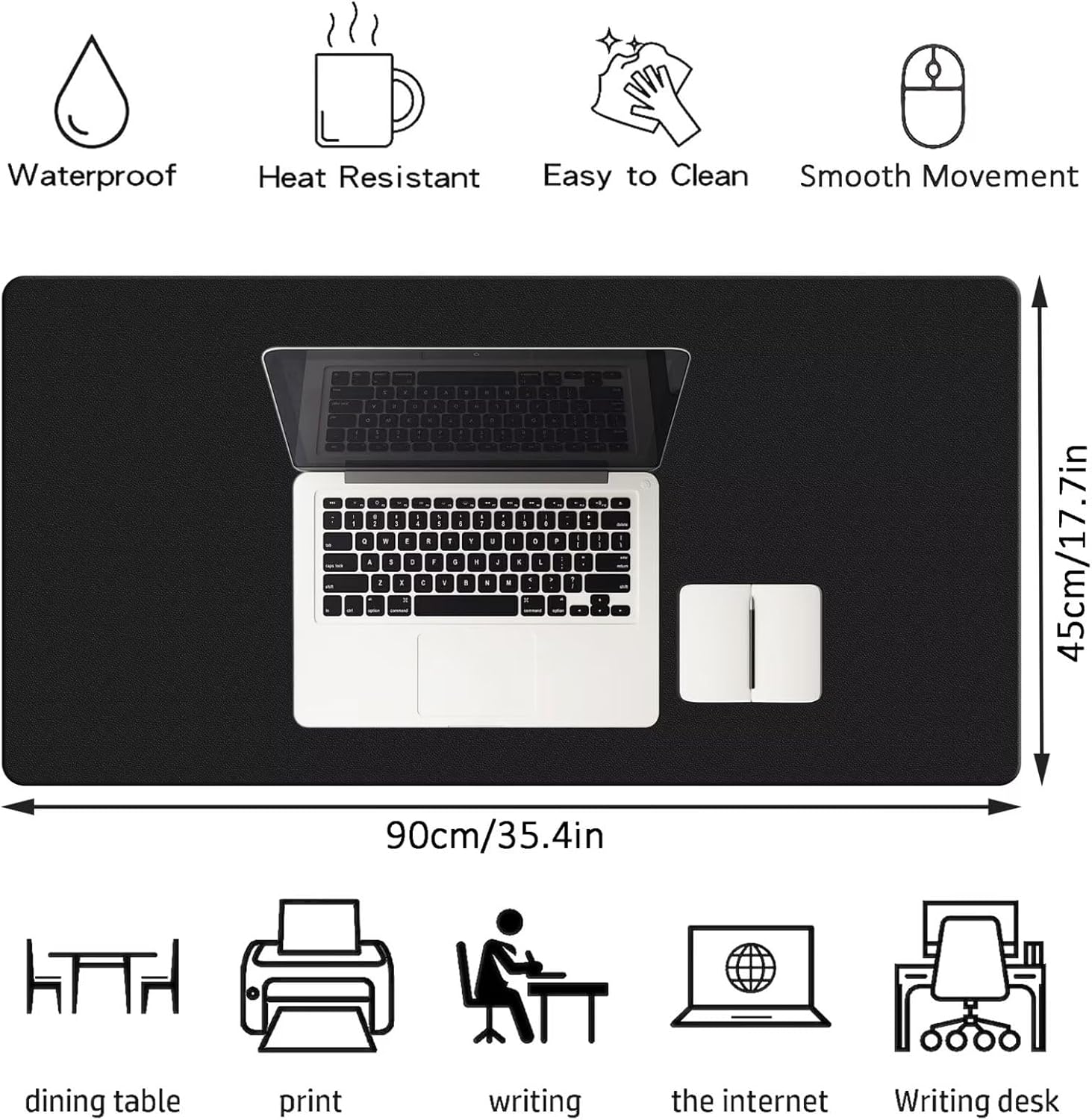 ❤Upgrade your workspace with our Premium Oversized Waterproof Leather Desk Pad, a fusion of style and practicality that redefines productivity.❤SUPREME CRAFTSMANSHIP: Immerse yourself in the tactile delight of premium leather, meticulously treated to showcase its natural texture.❤OVERSIZED DIMENSIONS: With its generous dimensions, this desk mat can accommodate not only your laptop or monitor but also a keyboard, mouse, notepad, and other accessories, making it a versatile addition to your workspace.❤WATERPROOF PERFORMANCE: Engineered with advanced waterproofing technology, this leather desk pad repels spills and accidents, providing reliable protection for your desk surface.❤NON-SLIP BASE: The underside features a non-slip backing, offering stability during your work hours and preventing unwanted movement. Stay focused and productive without distractions.❤Elevate your workspace with the luxurious touch of our Premium Oversized Waterproof Leather Desk Pad. Enjoy the perfect blend of style, durability, and functionality while protecting your desk from the rigors of daily use.